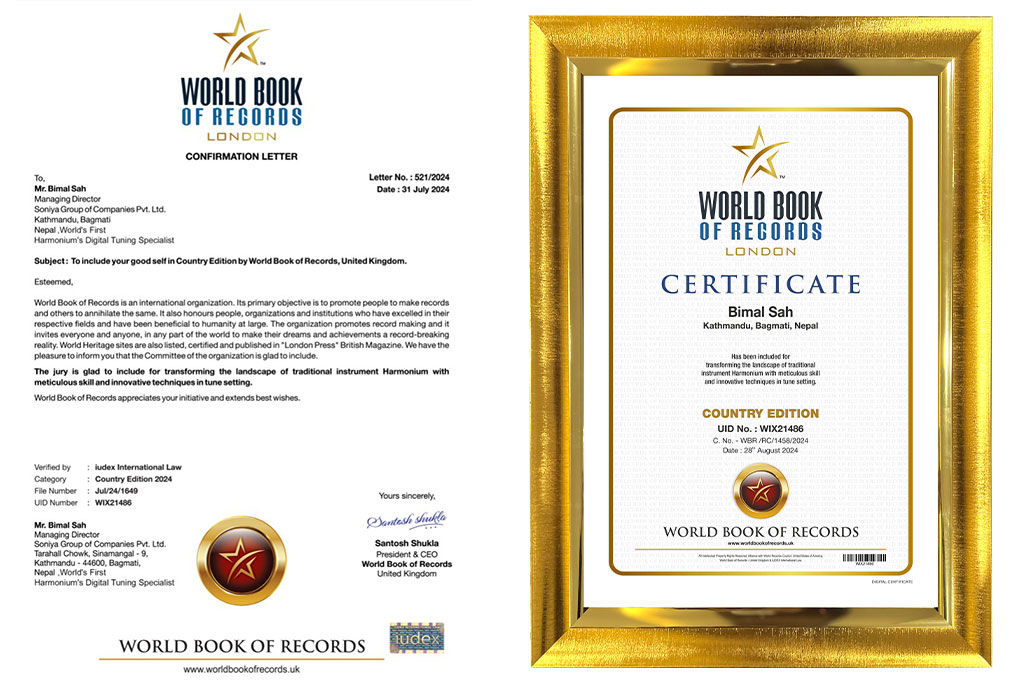 नेपालप्रतिको लामो योगदानलाई विश्वस्तरमा ( विश्व कीर्तिमान) , World Record मान्यता दिनु भएका लागि The World Book of Records लाई हृदयदेखि धन्यवाद दिन चाहन्छु। यो पुरस्कारले मेरो मात्र होइन, नेपालका शिक्षाविद्, अनुसन्धानकर्ताहरू, राजनितिज्ञ , संगीतकर्मी हरु , वैज्ञानिक हरु , गायक , गायिकाहरु लगायत सम्पूर्ण आ आफ्नो क्षेत्र का जानकार हरु चाहे त्यो भजन क्षेत्र मा होस या क्लासिकॉल , दोहरी क्षेत्र मा किन न होस , सम्पूर्ण नेपाली हरु लाई विश्व भरी मा नाम , दाम , इज्जत , प्रतिष्ठा मान , सम्मान सधै पाई रहोस भनि श्री बाबा पशुपतिनाथ संग सधै भरी प्रार्थना गरी नै रहने छु साथै आशा , भरोसा मिलोश र सबै सहकर्मीहरूको साझा प्रयासलाई प्रतिबिम्बित गर्छ। यो मान्यताले मलाई थप प्रेरित गरेको छ, र म भविष्यमा अझ सशक्त योगदान गर्न प्रतिवद्ध छु। तपाई को दिन , समय शुभ र फलदायी रहोस जय श्री राम… जय जय श्री राम…
